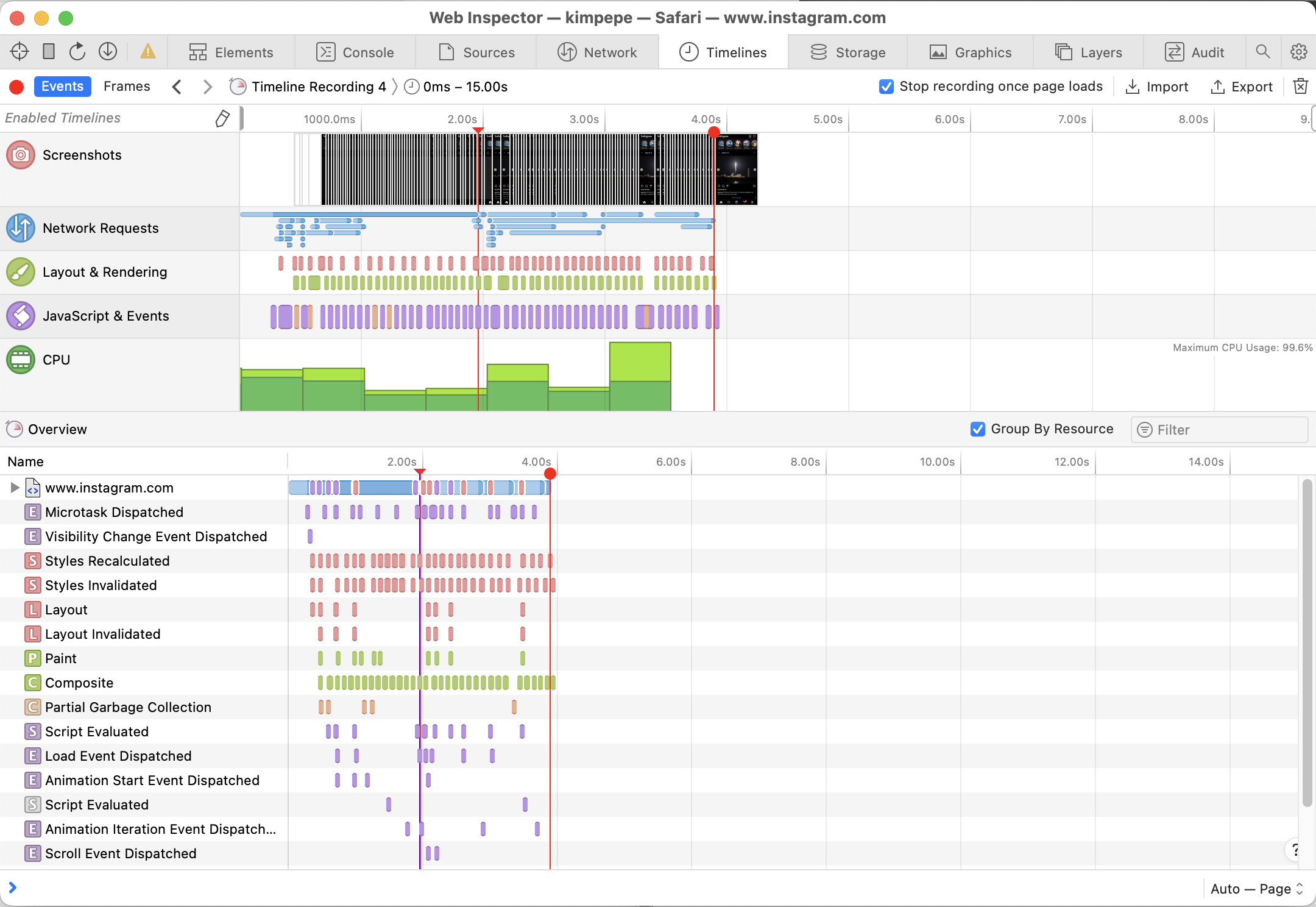- `TimeLine`: 특정 동작을 수행하는 과정에서 발생한 데이터를 시각적으로 제공.
