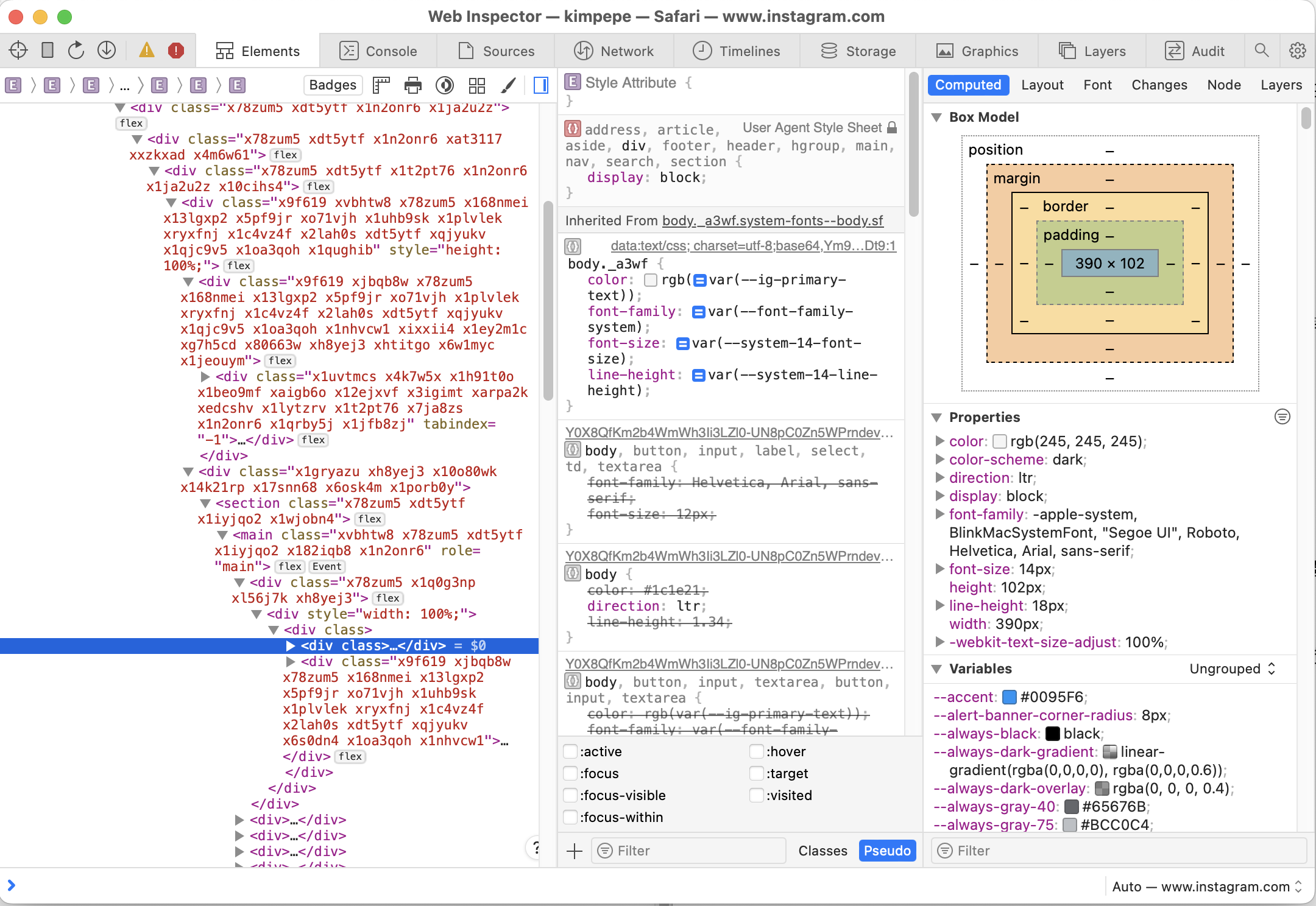 1.4.에서 Mac의 웹 검사기(Web Inspector)를 실행하면, 별도의 창이 나타난다.